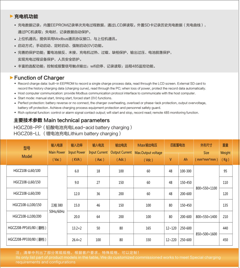 HGCZ08系列智能充電機(jī)用高性能嵌入式充電控制單元控制充電電流,通過(guò)參數(shù)優(yōu)化設(shè)計(jì)的主電路,為各種蓄電池、鋰電池提供連續(xù)可調(diào)的充電電流,滿(mǎn)足各種充電工藝要求。