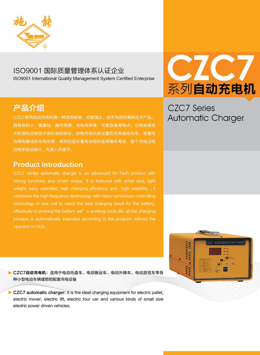 CZC7系列是一種造型新穎、功能強(qiáng)大、技術(shù)先進(jìn)的充電機(jī)產(chǎn)品。具有體積小、重量輕、操作簡便、充電效率高、可靠性高等特點(diǎn)。它將高頻電子技術(shù)和嵌入式微機(jī)控制技術(shù)有機(jī)地結(jié)合,由單片機(jī)控制的充電機(jī)按設(shè)置的充電曲線充電,使蓄電池得到比較好的充電效果,延長蓄電池組的使用循環(huán)壽命。整個(gè)充電過程按程序自動(dòng)進(jìn)行,無需人員值守。