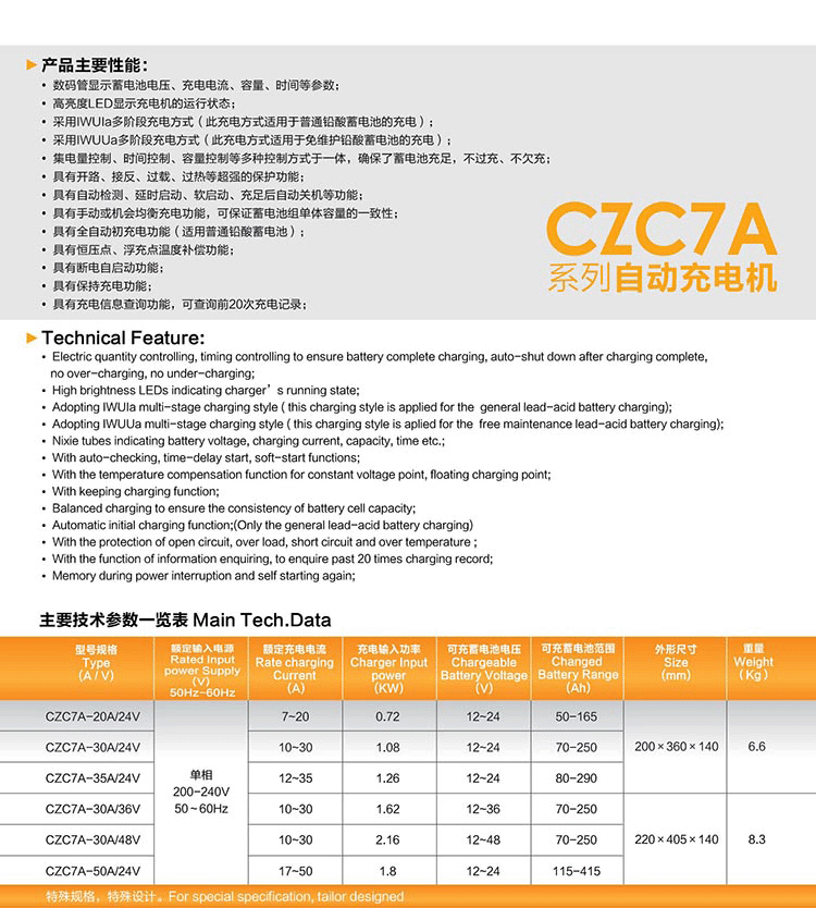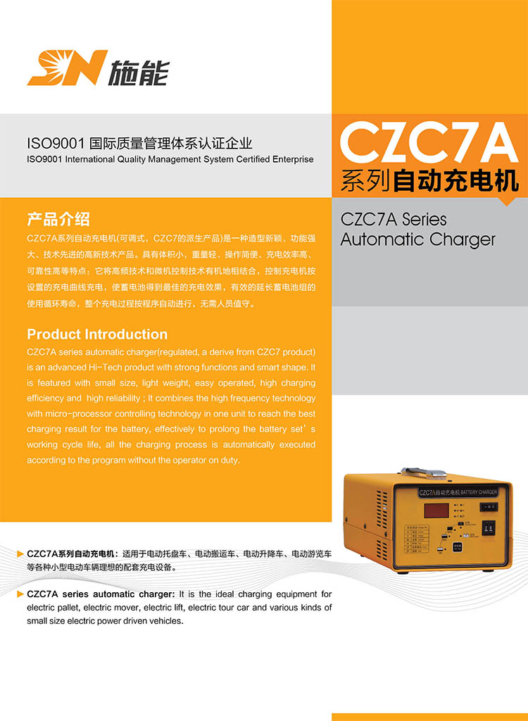 CZC7A系列自動充電機(jī)(可調(diào)式,CZC7的派生產(chǎn)品)是一種造型新穎、功能強(qiáng)大、技術(shù)先進(jìn)的高新技術(shù)產(chǎn)品。具有體積小,重量輕、操作簡便、充電效率高、可靠性高等特點:它將高頻技術(shù)和微機(jī)控制技術(shù)有機(jī)地相結(jié)合,控制充電機(jī)按設(shè)置的充電曲線充電,使蓄電池得到最佳的充電效果,有效的延長蓄電池組的使用循環(huán)壽命,整個充電過程按程序自動進(jìn)行,無需人員值守。